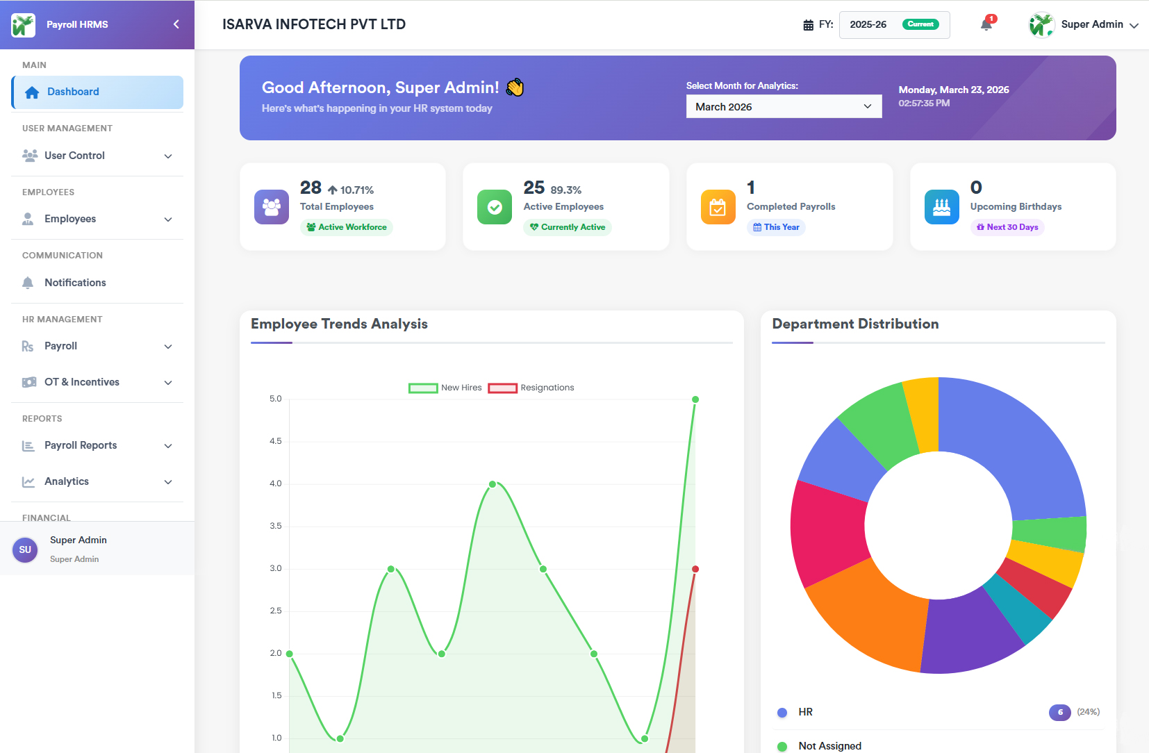 HRMS & Payroll software automates and streamlines every HR function — from personnel management to payroll — delivering a highly time-efficient experience.